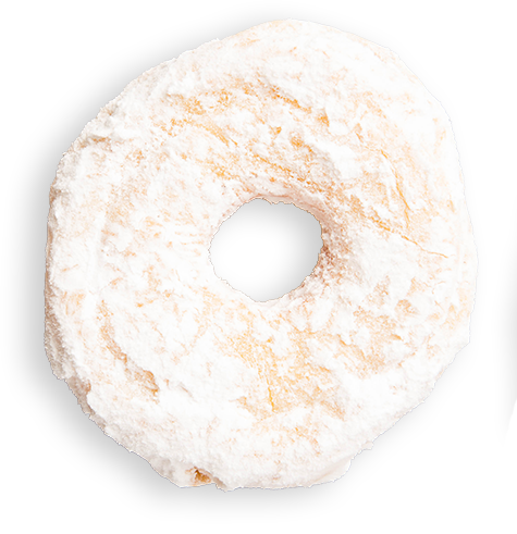 Traditional donut covered in powdered sugar.