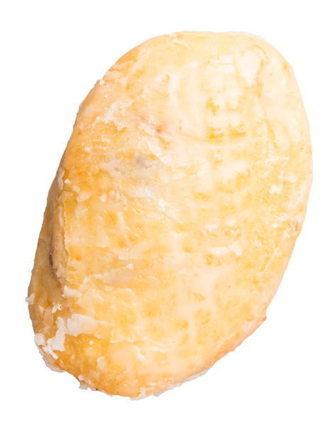 A glazed donut with strawberry filling.
